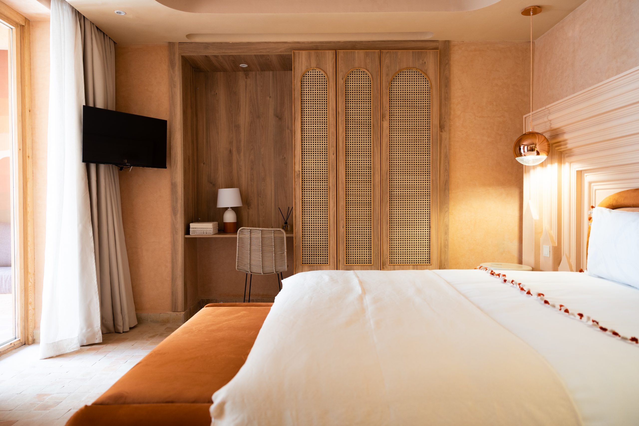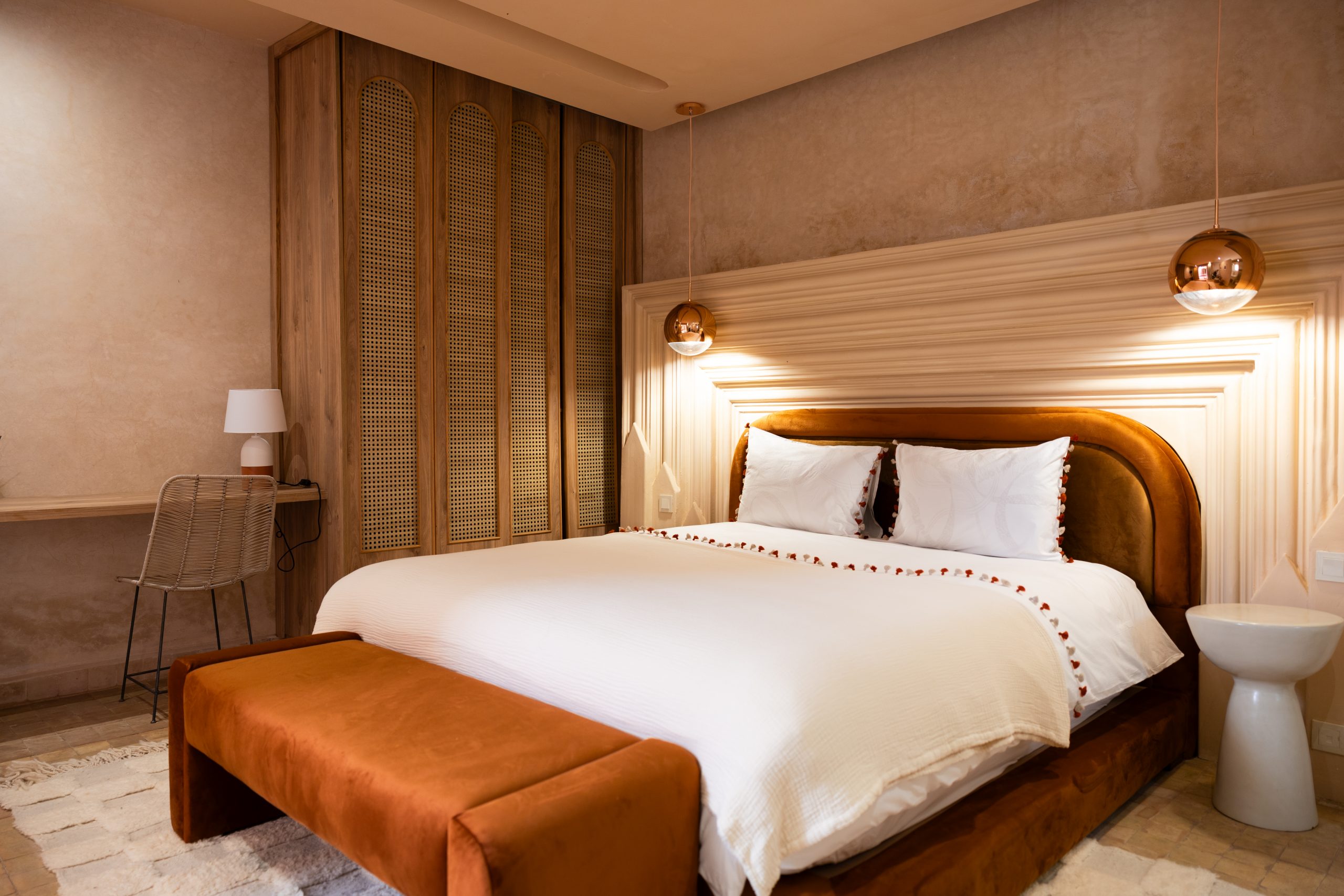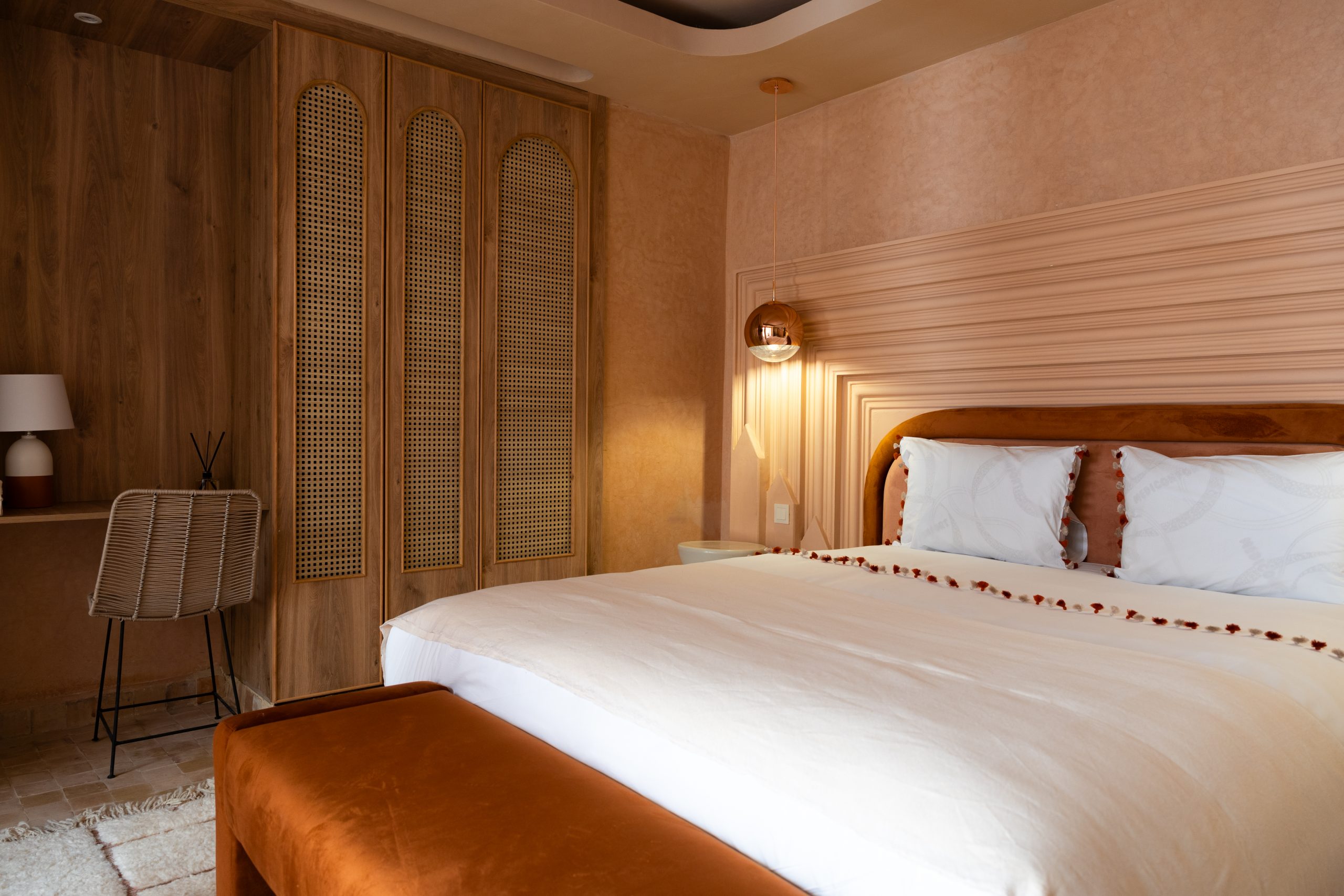 Il mêle avec élégance l’authenticité de l’art e vivre marocain à une touche rétro inspirée des années 70.