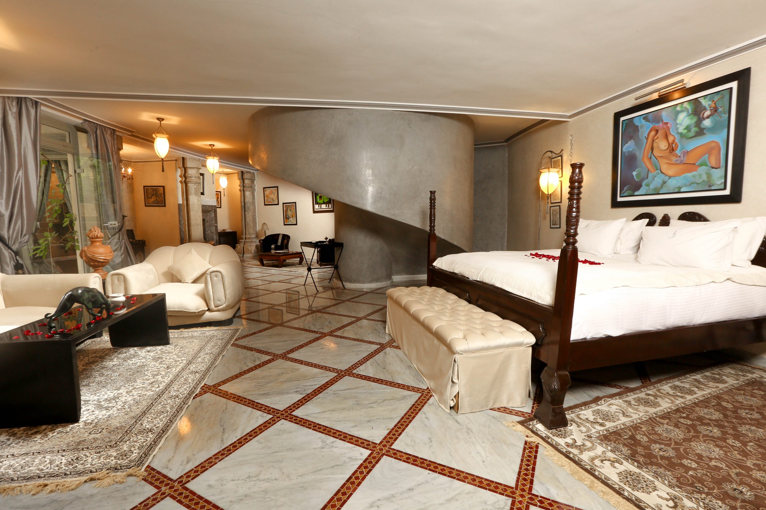 Plongez dans l’univers somptueux du Palais Rhoul à Marrakech, où chaque hébergement est une invitation à la sérénité et au raffinement.